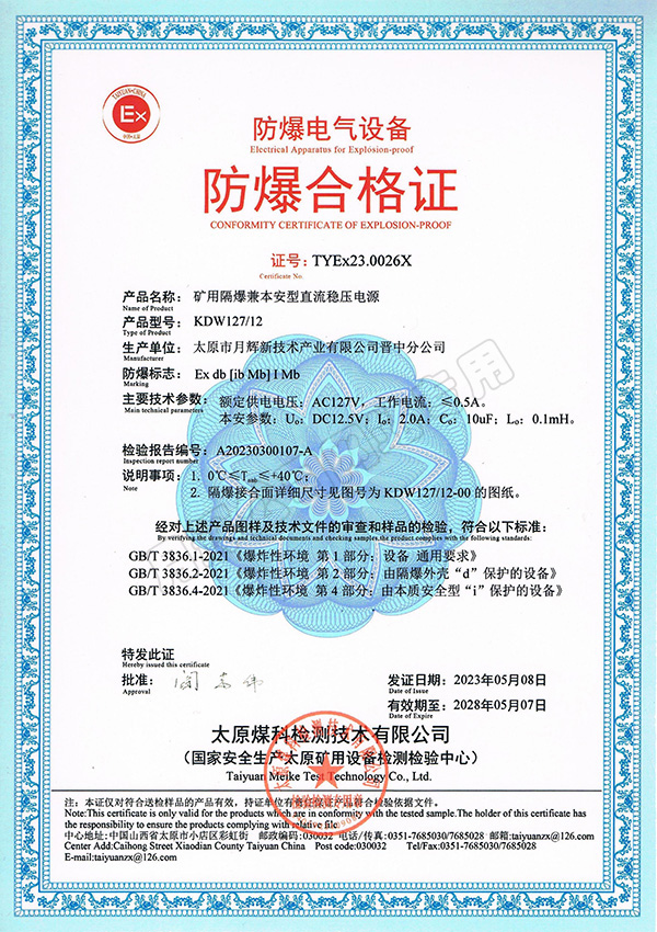 KDW127/12礦用隔爆兼本安型直流穩(wěn)壓電源是爆炸性環(huán)境用防爆電氣設(shè)備,輸入電壓AC127V,輸出電壓DC12V;該穩(wěn)壓電源體積小、重量輕、容量大,現(xiàn)場安裝、拆卸、移動極為便捷,適用于煤礦井下各類作業(yè)場所。